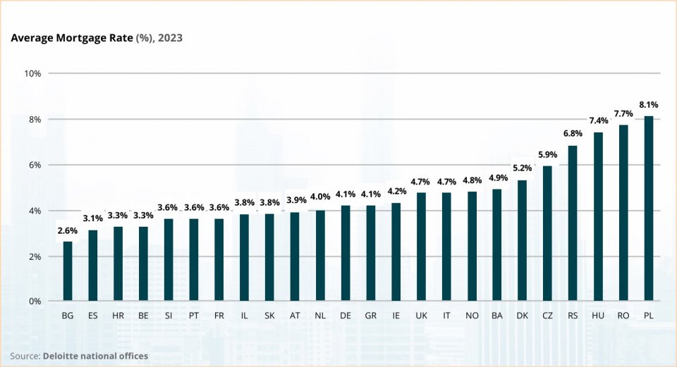 България неочаквано за мнозина оглави класация за най-ниски лихви по ипотечни кредити в Европа през 2023 г., според ново проучване на „Делойт“. Със средна лихва от едва 2.58%, страната ни е изпреварила държави като Полша, Румъния и Унгария, където лихвите по ипотеките са значително по-високи – съответно 8.08%, 7.70% и 7.40%. В Сърбия и Чехия средните лихвени проценти също остават високи – 6.76% и 5.90%. В други държави, като Белгия (3.33%), Хърватия (3.26%) и Испания (3.45%), лихвите по ипотеките също са сравнително ниски, но все пак над българските нива.